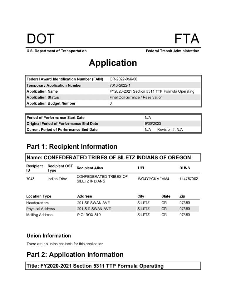 Federal Award Identification Number (FAIN)OR202205600Temporary Application Number704320221Application NameFY20202021