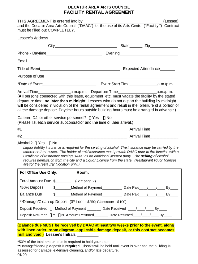 Rental Agreement - Decatur Area Arts Council template instructions