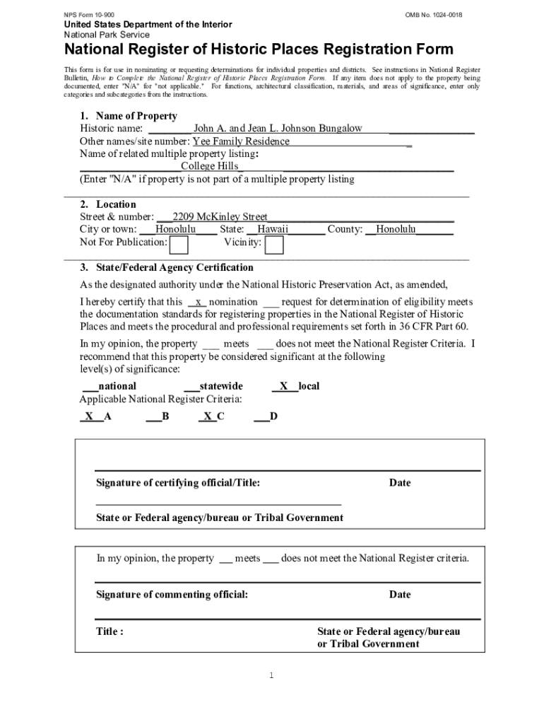 Get the free NPS Form 10-900 OMB No. 1024-0018 United States Department of ... - Hawaii