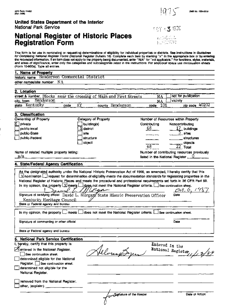 NPS Form 10900 (Rev. 886)I0MB No. 10244018United States Department of the Interior National Park ServiceNational Register of Historic Places Registration Form This form is for use in nominating or