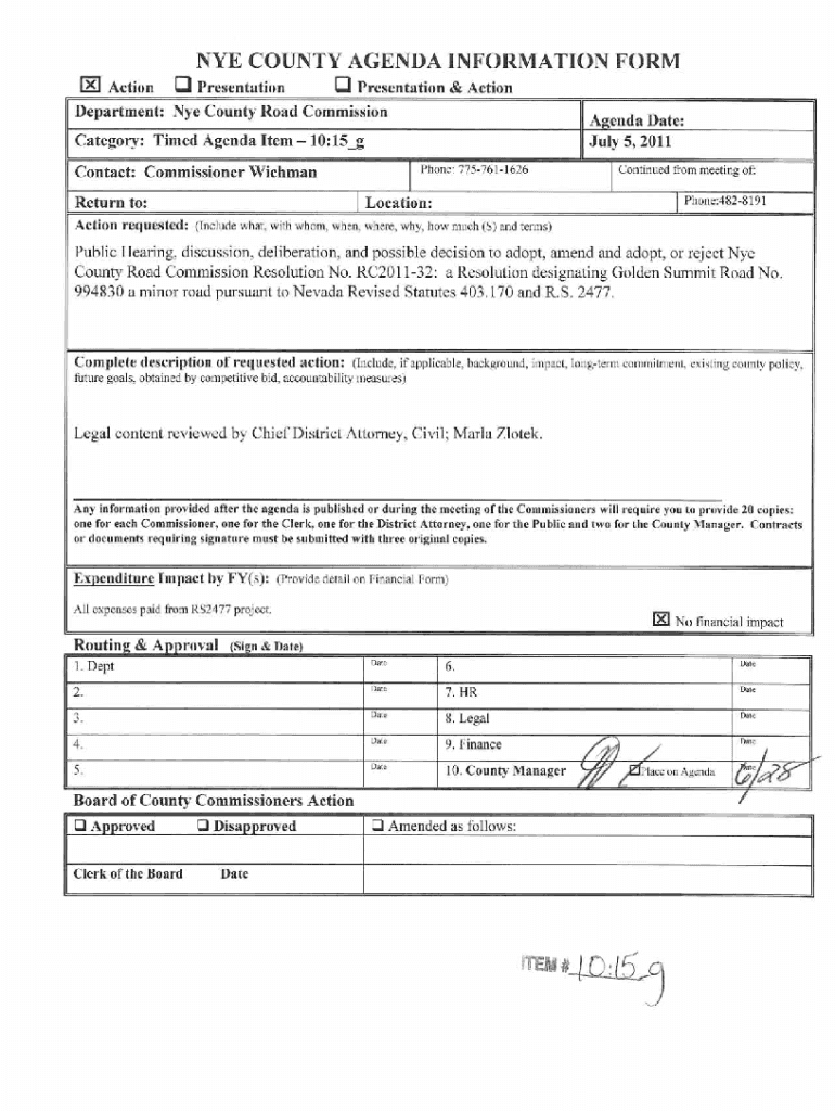 Nye County agenda information can be filled out online through the county's official website or submitted in person at the county office.