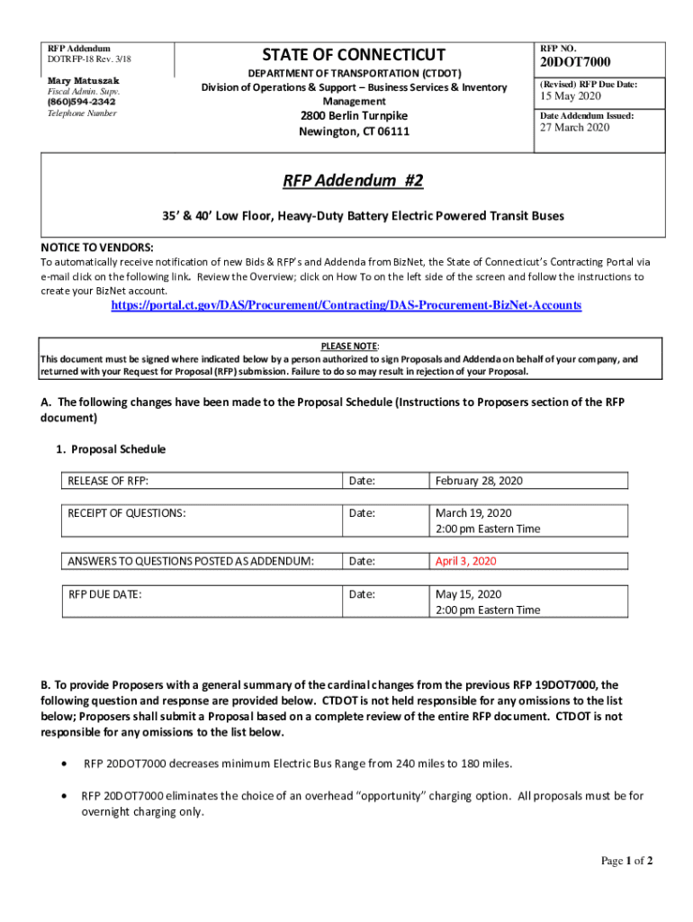 Get the free STATE OF CONNECTICUT RFP Addendum #2 - Biznet