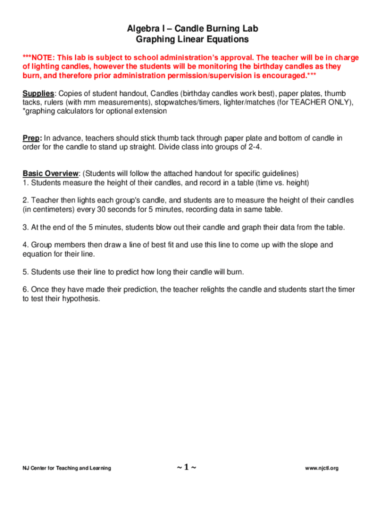Get the free Name Date Lab: Candle Burning PMI Algebra I - content.njctl.org