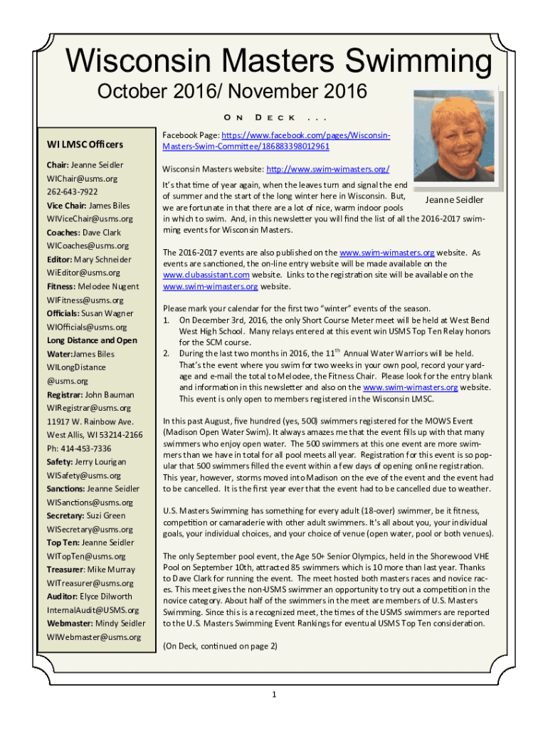 Get the free News & Noteworthy - Wisconsin Masters Swimming