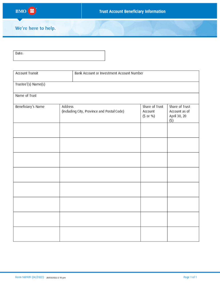 Trust Account Beneficiary Informational:DDMMMYYYYAccount Transition Account or Investment Account NumberTrustee(s) Name(s)