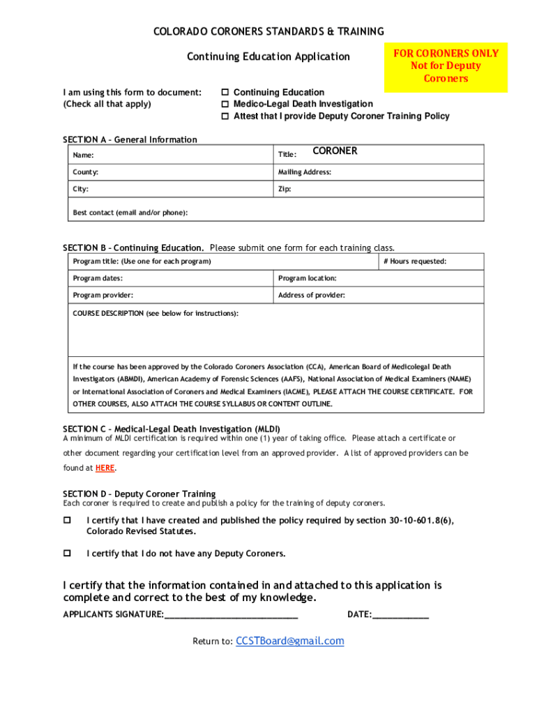 Get the free COLORADO CORONERS STANDARDS & TRAINING Continuing Education Application
