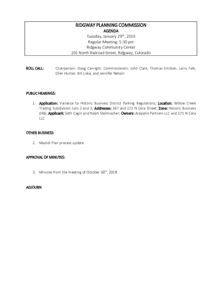 Get the free Ridgway Planning CommissionTown of Ridgway - Colorado
