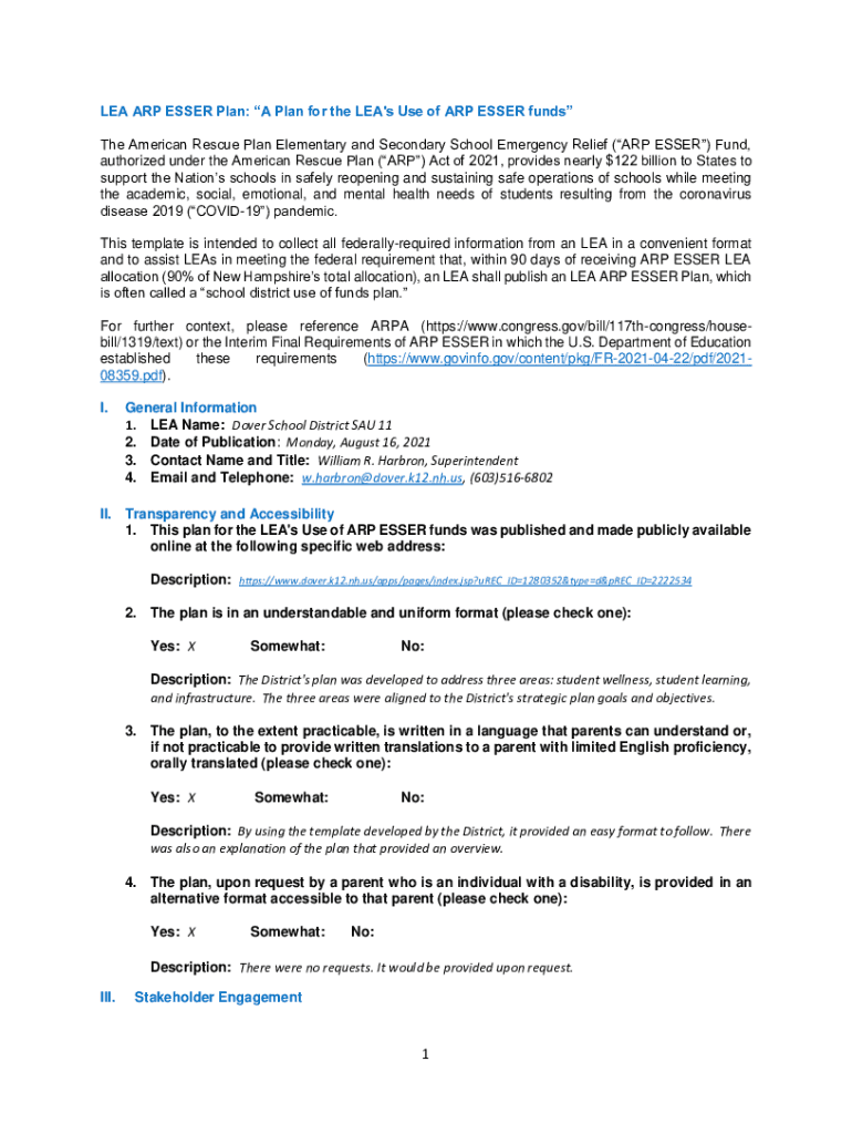 LEA ARP LESSER Plan: A Plan for the LEA\'s Use of ARP LESSER funds The American Rescue Plan Elementary and Secondary School Emergency Relief (ARP LESSER) Fund, authorized under the American Rescue