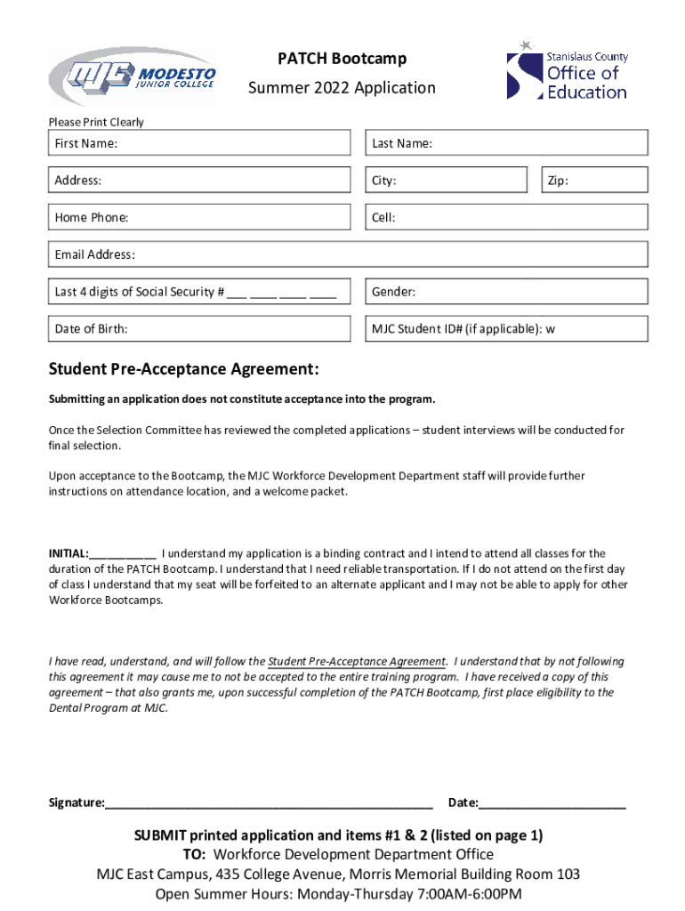 Summer 2022 Professional Advancement Towards Clinical Health (PATCH) BootcampApplication Deadline: June 20, 2022 @ 5:00 pm BOOKCASE START DATE: July 11, 2022Class meets Monday Friday from 8:30 AM
