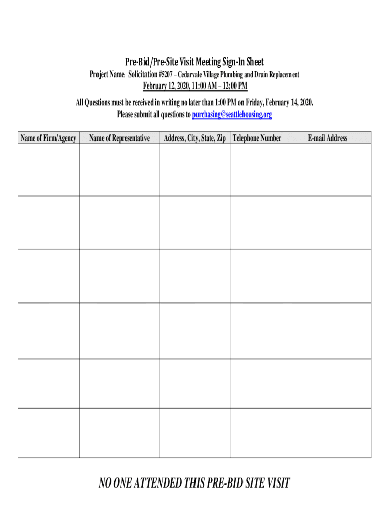 Get the free NO ONE ATTENDED THIS PRE-BID SITE VISIT