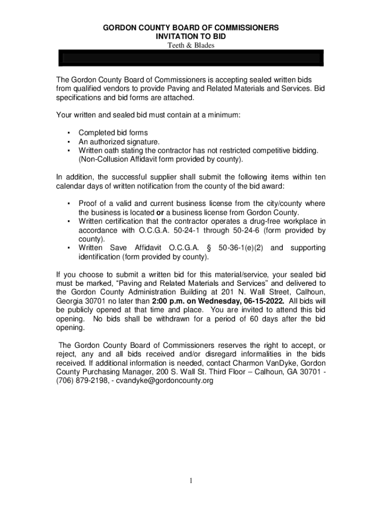 Get the free GORDON COUNTY BOARD OF COMMISSIONERS INVITATION TO BID Teeth & Blades