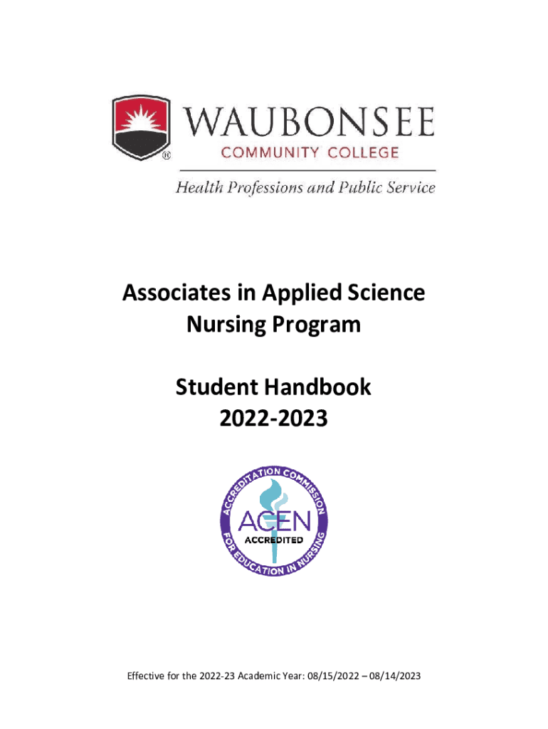 Associates in Applied Science Nursing Program Student Handbook 20222023Effective for the 202223 Academic Year: 08/15/2022 08/14/2023Table of Contents 1.0WELCOME ...........................................................................................................................................
