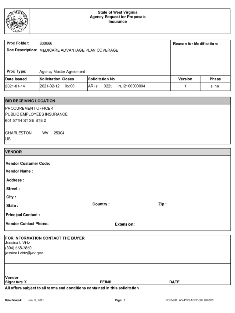 State of West Virginia Agency Request for Proposals InsuranceProc Folder:830866Reason for Modification:Doc Description: MEDICARE ADVANTAGE PLAN COVERAGEProc Type:Agency Master AgreementDate IssuedSolicitation