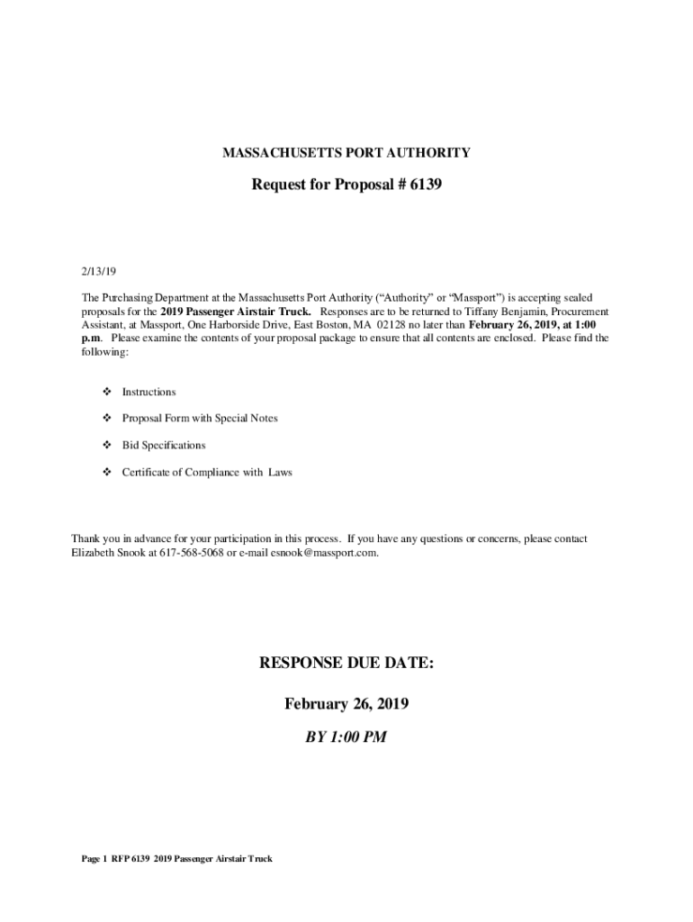 MASSACHUSETTS PORT AUTHORITYRequest for Proposal # 61392/13/19 The Purchasing Department at the Massachusetts Port Authority (Authority or Passport) is accepting sealed proposals for the 2019 Passenger