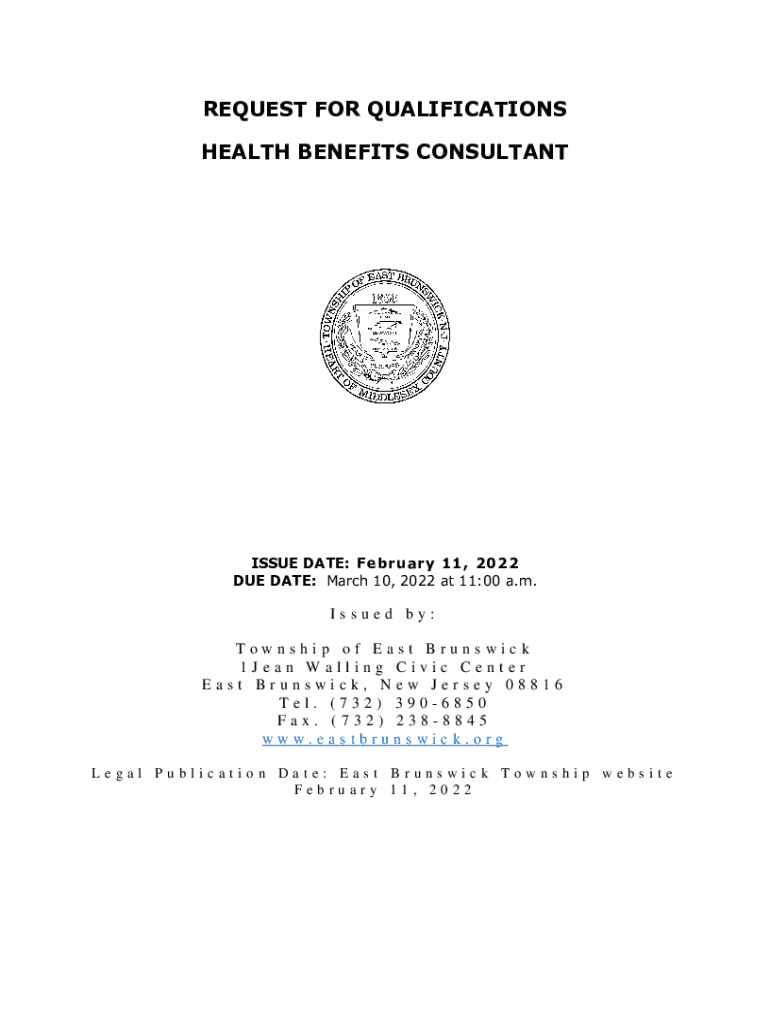 Get the free REQUEST FOR QUALIFICATIONS HEALTH BENEFITS CONSULTANT - East Brunswick