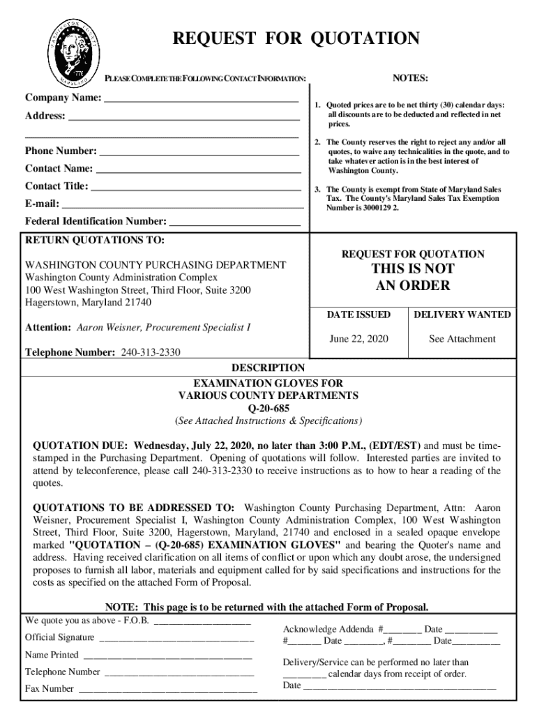 Get the Get the free REQUEST FOR QUOTATION PLEASE COMPLETE THE FOLLOWING ...