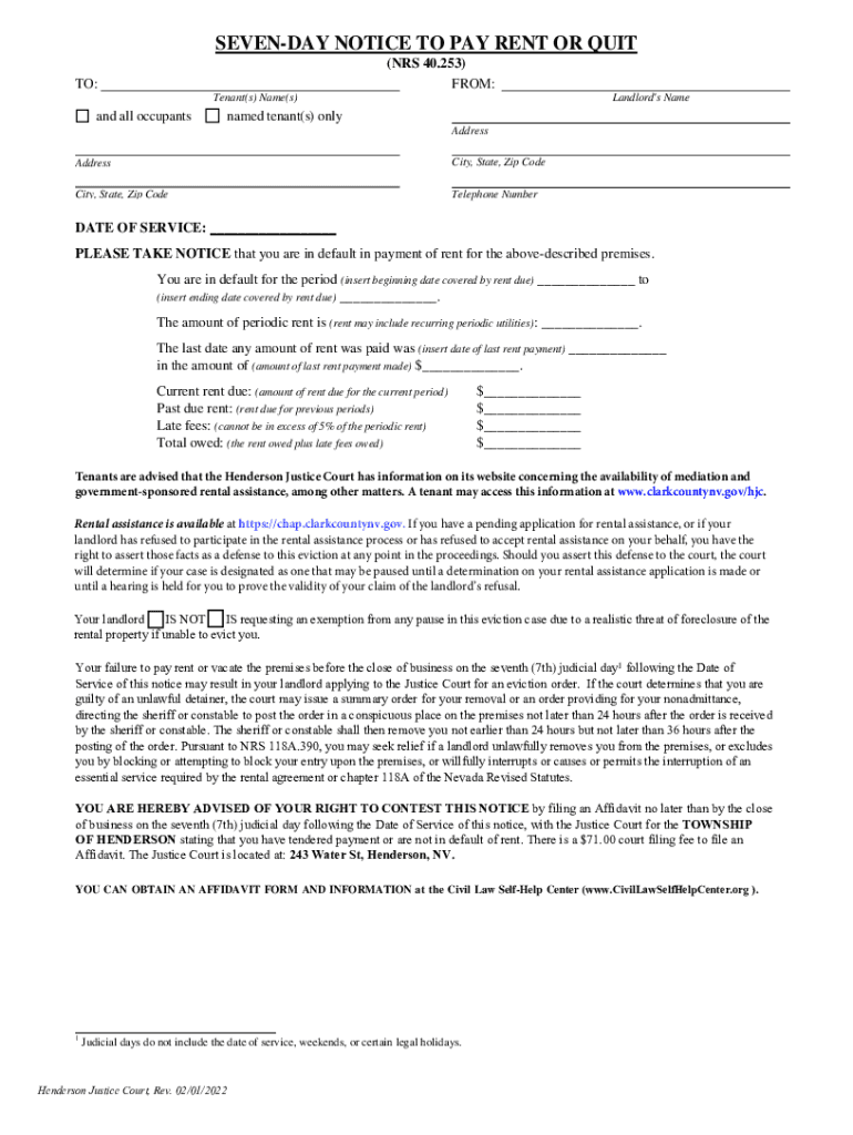 SEVENTY NOTICE TO PAY RENT OR QUIT