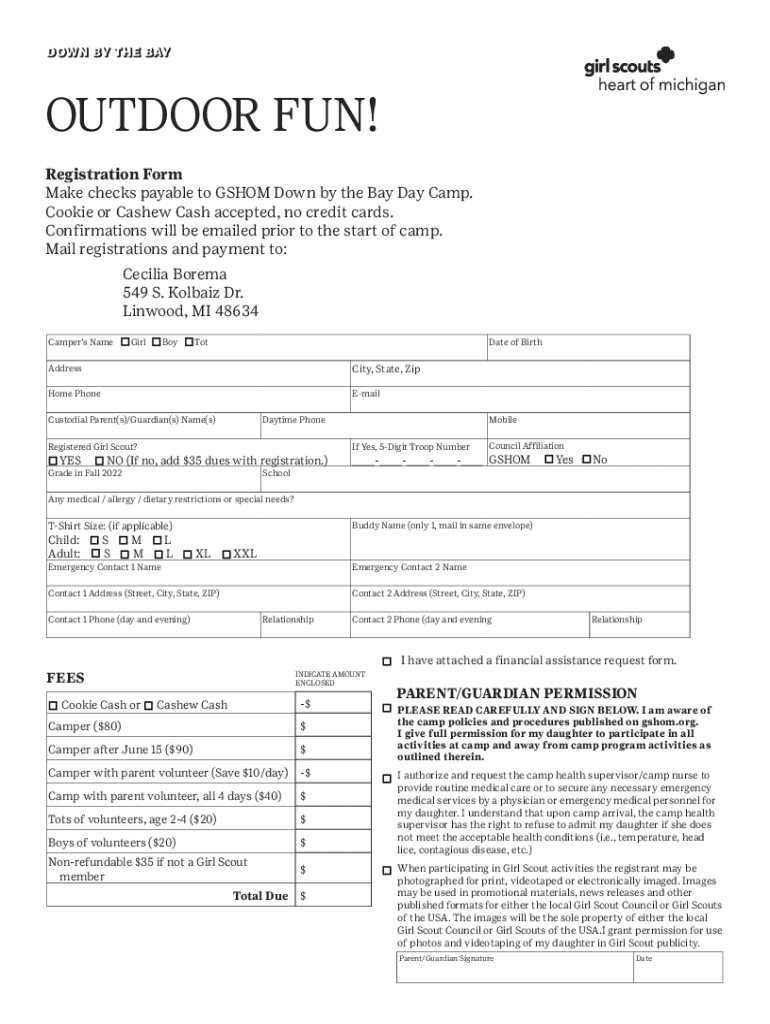 Fill out your camping for girls and online with pdfFiller!
