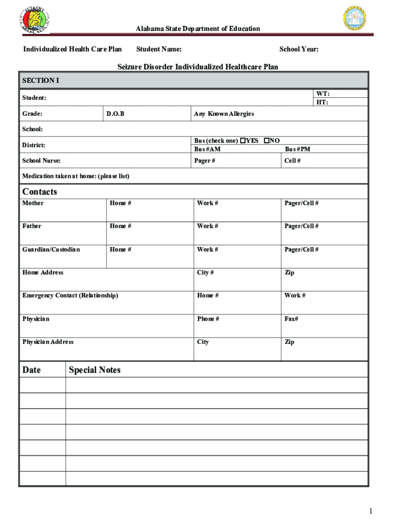 Individualized Health Care PlanStudent Name:School Year:Seizure Disorder Individualized Healthcare Plan