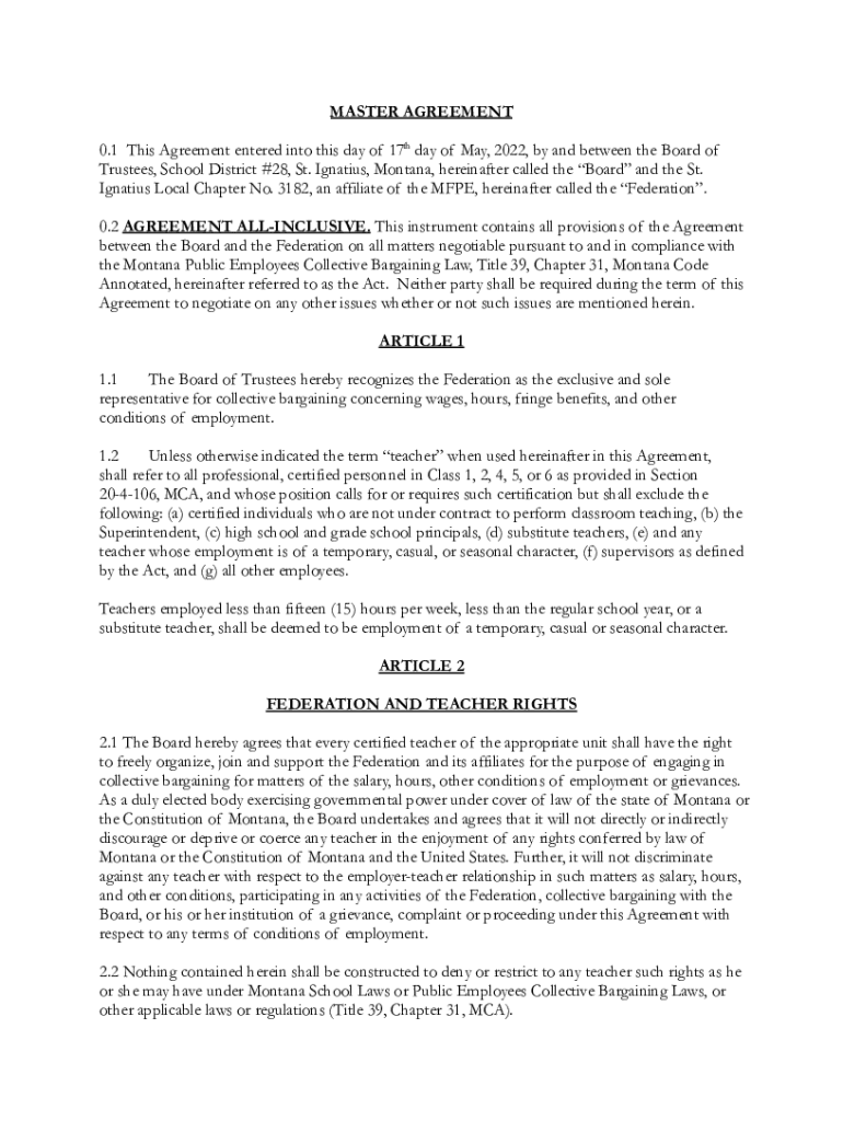0.1 This Agreement entered into this day of 17th day of May 2022, by and between the Board of