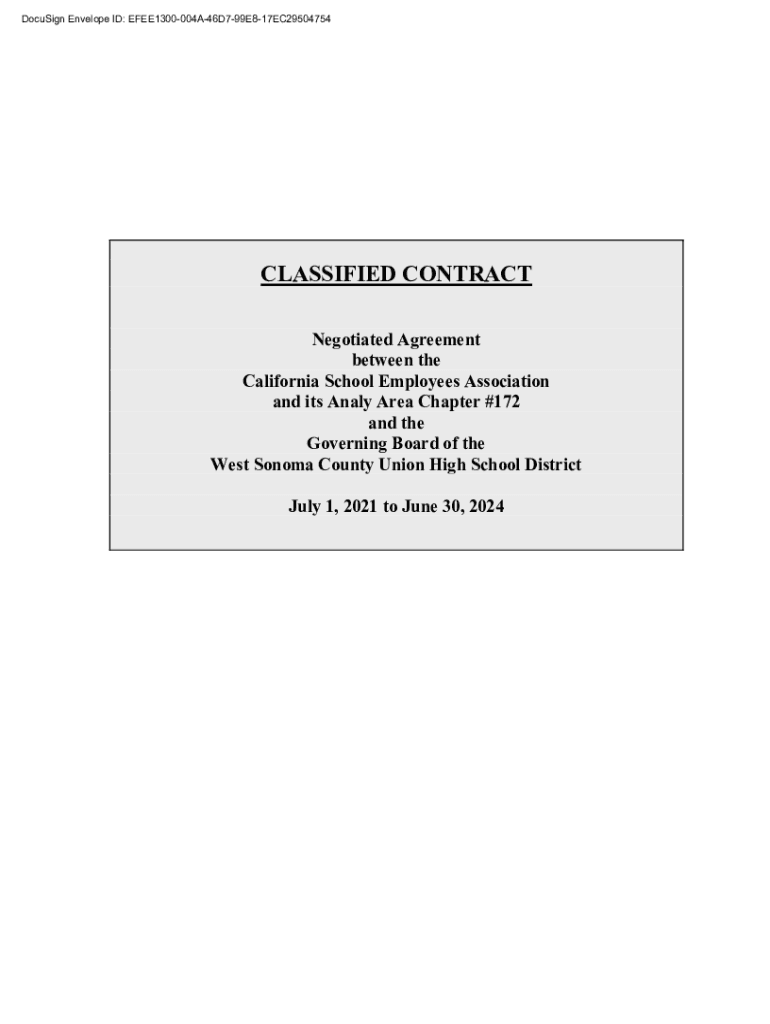 DocuSign Envelope ID: EFEE1300004A46D799E817EC29504754CLASSIFIED CONTRACT Negotiated Agreement between the California School Employees Association and its Anal Area Chapter #172 and the Governing