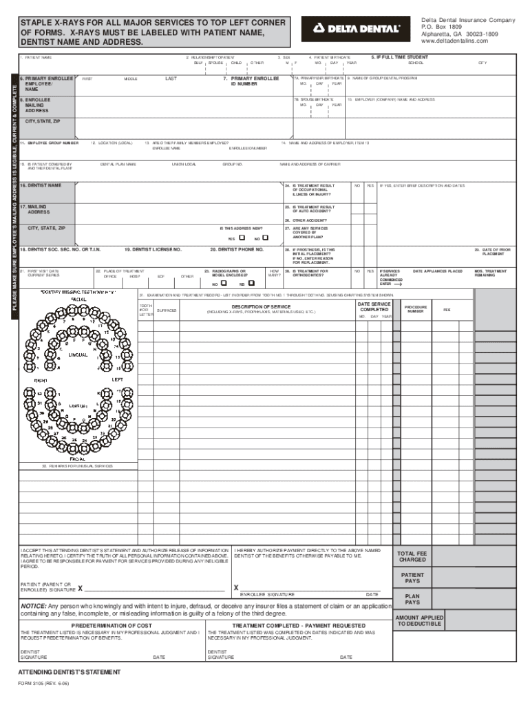 Delta Dental Insurance Company P.O. Box 1809 Alpharetta, GA 300231809 www.deltadentalins.comSTAPLE RAYS FOR ALL MAJOR SERVICES TO TOP LEFT CORNER OF FORMS. RAYS MUST BE LABELED WITH PATIENT NAME,