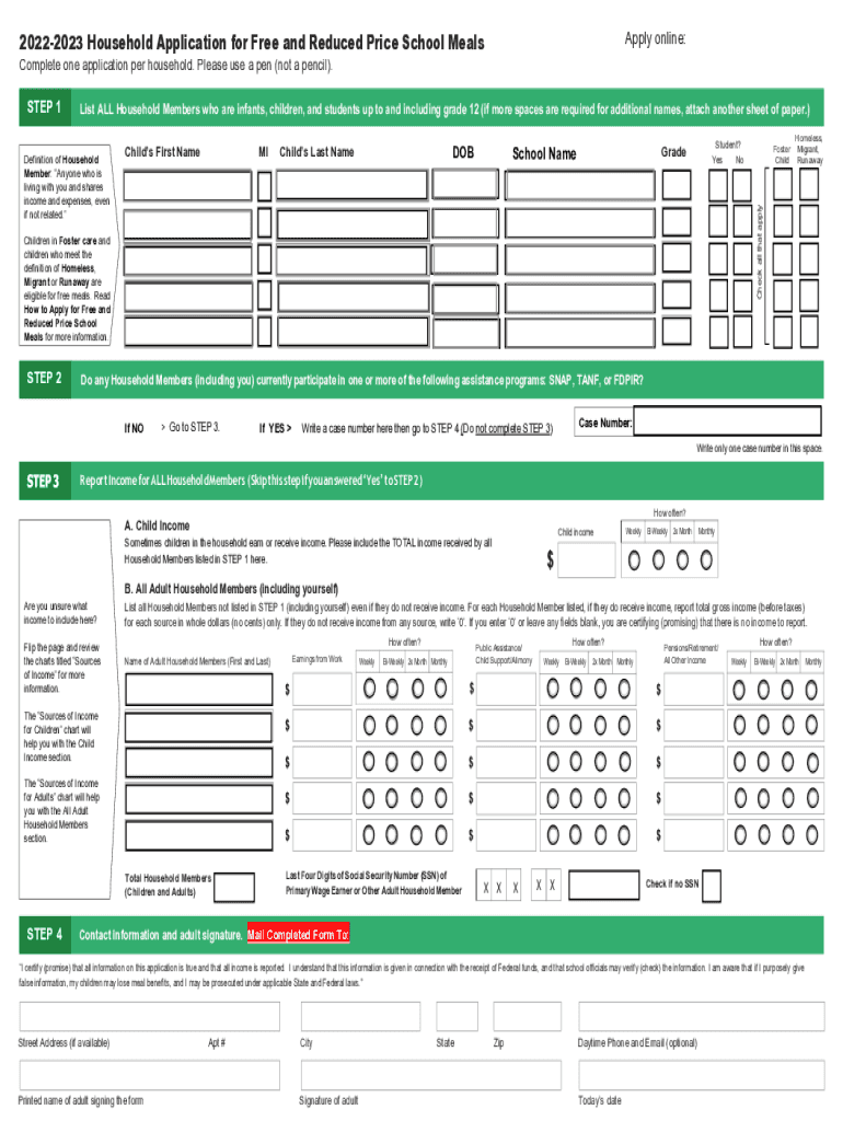 Apply online:20222023 Household Application for Free and Reduced Price School Meals