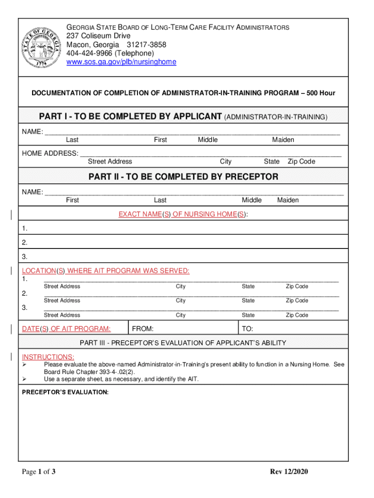 www.sos.ga.gov/plb/nursinghomeDOCUMENTATION OF COMPLETION OF ADMINISTRATORINTRAINING