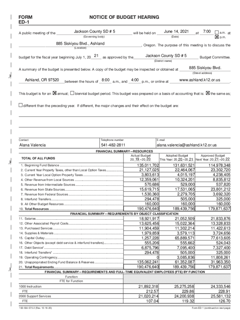 Get the free NOTICE OF BUDGET HEARING FORM ED-1 - AWS