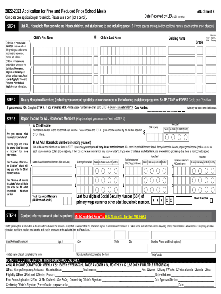 Attachment E20222023 Application for Free and Reduced Price School Mandate Received by LEA (LEA use only)Complete one application per household. Please use a pen (not a pencil).STEP 1List ALL Household