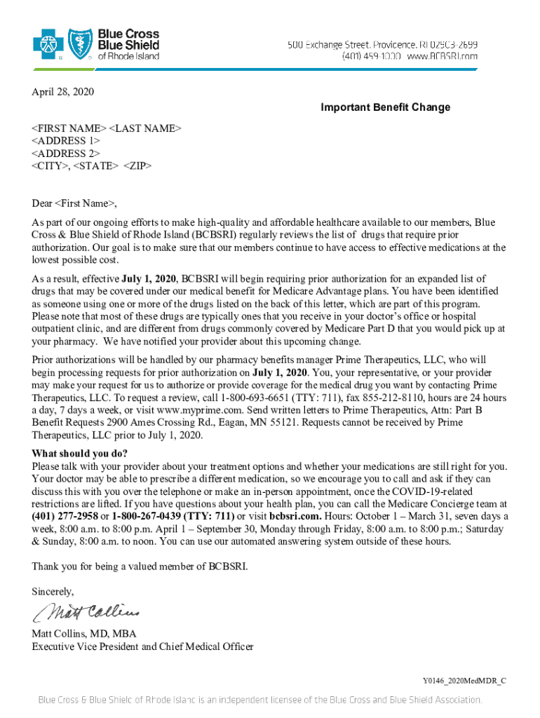 April 28, 2020, Important Benefit Change FIRST NAME LAST NAME ADDRESS 1 ADDRESS 2 CITY, STATE ZIP Dear First Name, As part of our ongoing efforts to make high quality and affordable healthcare available