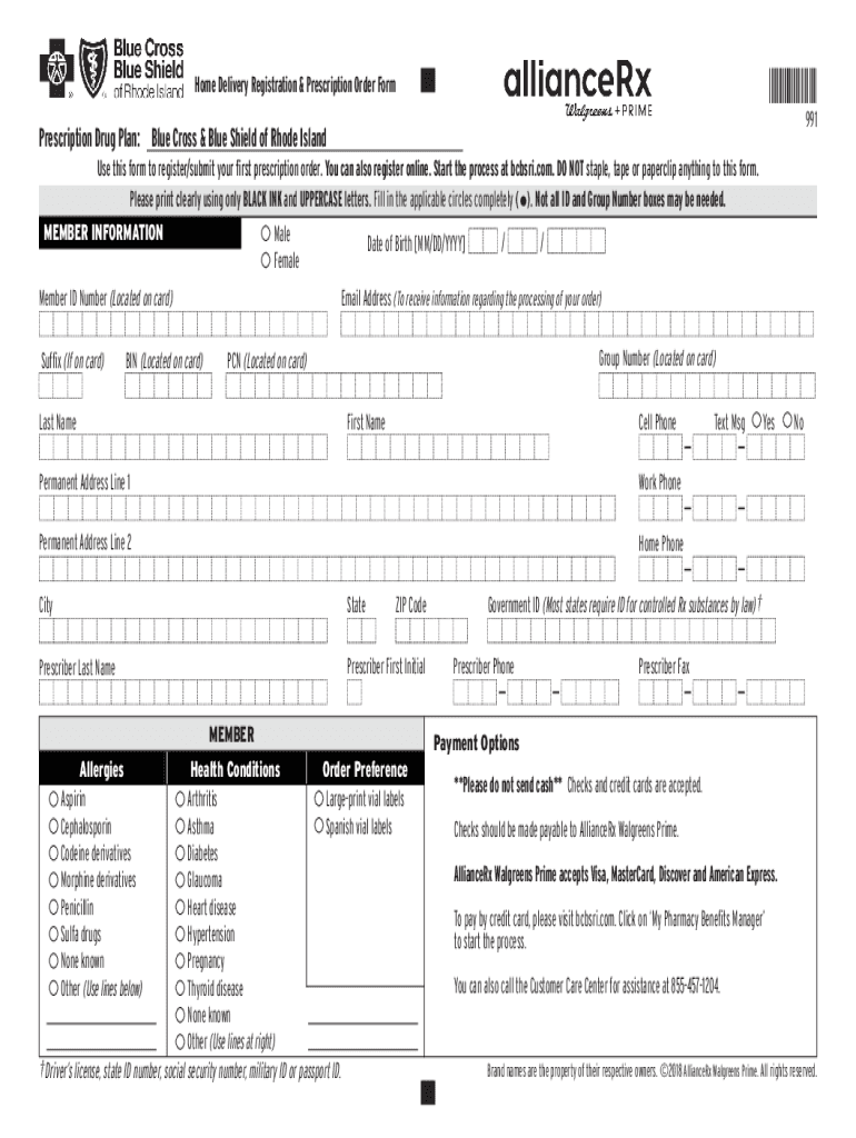*991×Home Delivery Registration & Prescription Order Form991Prescription Drug Plan: Blue Cross & Blue Shield of Rhode Island Use this form to register/submit your first prescription order. You can
