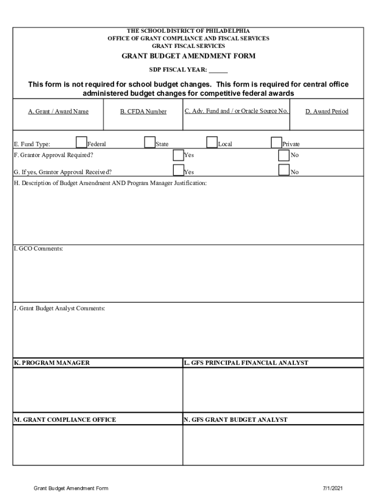 Get the free Grant Budget Amendment Form