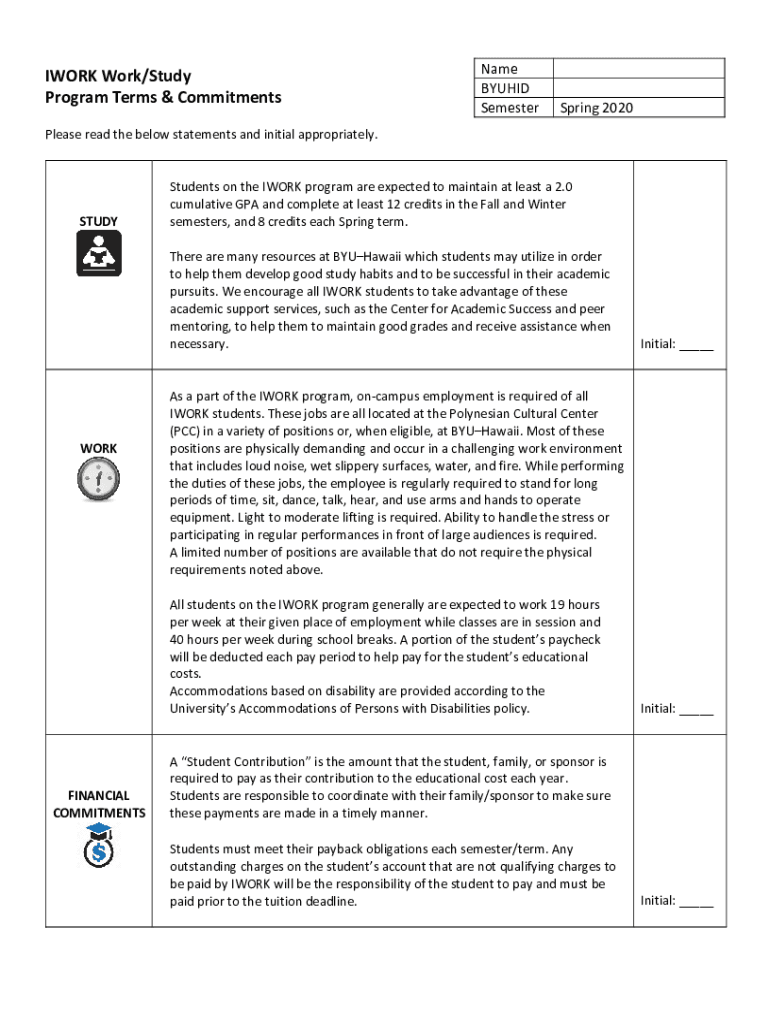 Get the free IWORK Work/Study Name Program Terms & Commitments BYUHID Semester ...