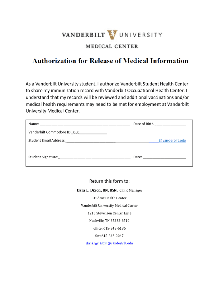As a Vanderbilt University student, I authorize Vanderbilt Student Health Center