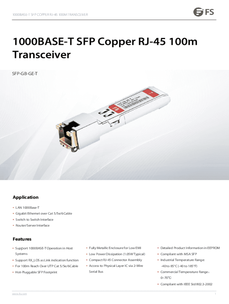 Fill out your 1000base-t sfp copper rj-45 online with pdfFiller!