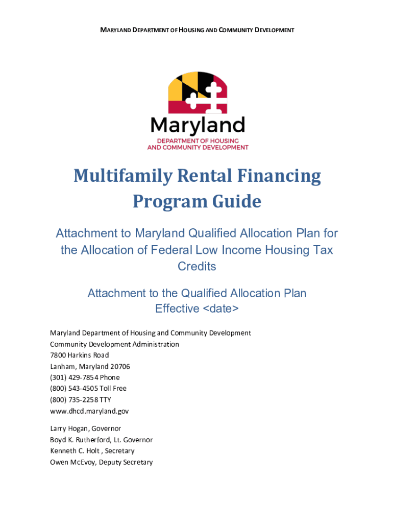 MARYLAND DEPARTMENT OF HOUSING AND COMMUNITY DEVELOPMENTMultifamily Rental FinancingProgram GuideAttachment to Maryland Qualified Allocation Plan for