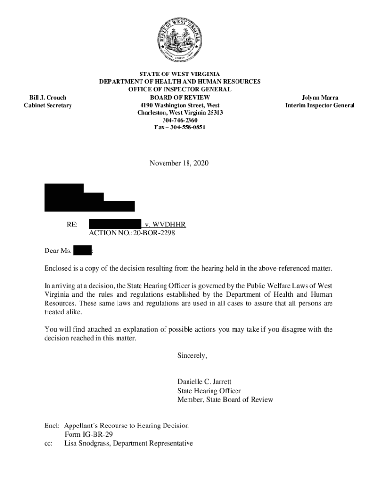 Get the free v. WVDHHR ACTION NO.:20-BOR-2298 Dear Ms.