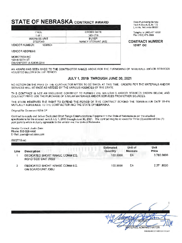 STATE OF NEBRASKAcoNTRACTAWARDStale Purchasing Bureau