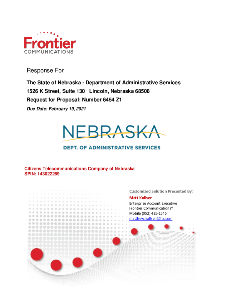 Response For The State of Nebraska Department of Administrative Services 1526 K Street, Suite 130 Lincoln, Nebraska 68508 Request for Proposal: Number 6454 Z1 Due Date: February 19, 2021Citizens Telecommunications