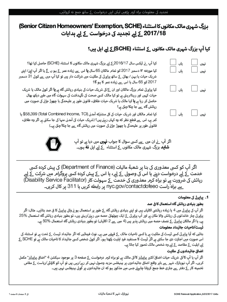 )(Senior Citizen Homeowners Exemption, SHE 2017/18) (SHE