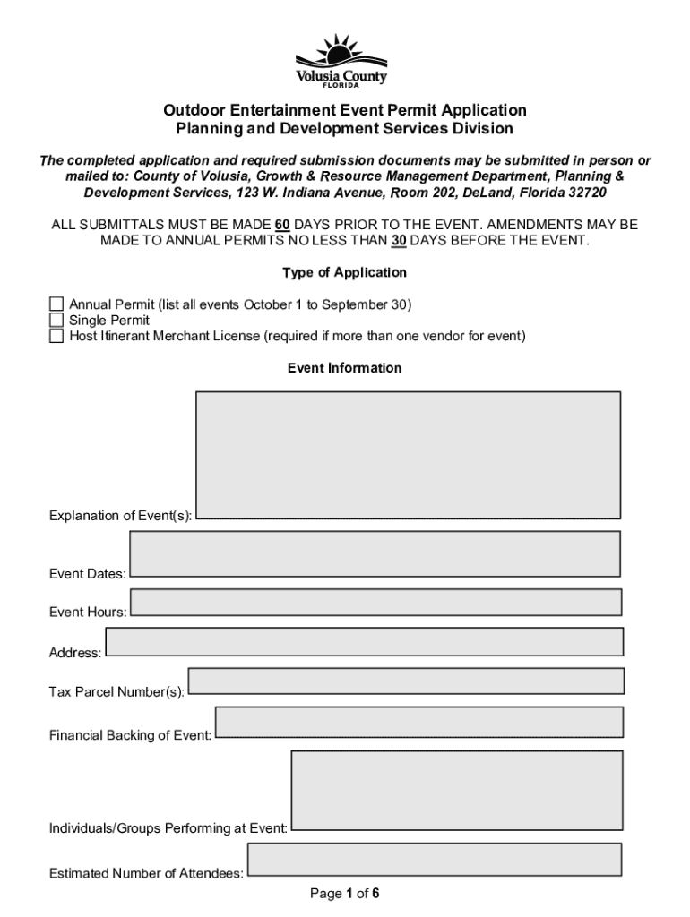 Get the free Outdoor Entertainment Event Permit Application Planning and Development ...