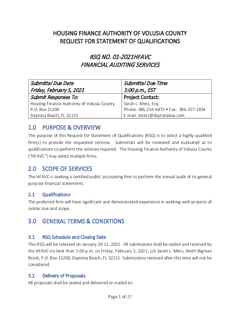 Get the free HOUSING FINANCE AUTHORITY OF VOLUSIA COUNTY REQUEST FOR STATEMENT OF ...