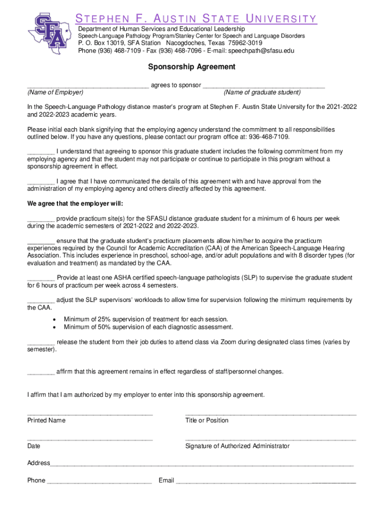 SpeechLanguage Pathology Program/Stanley Center for Speech and Language Disorders. O. Box 13019, SFA Station