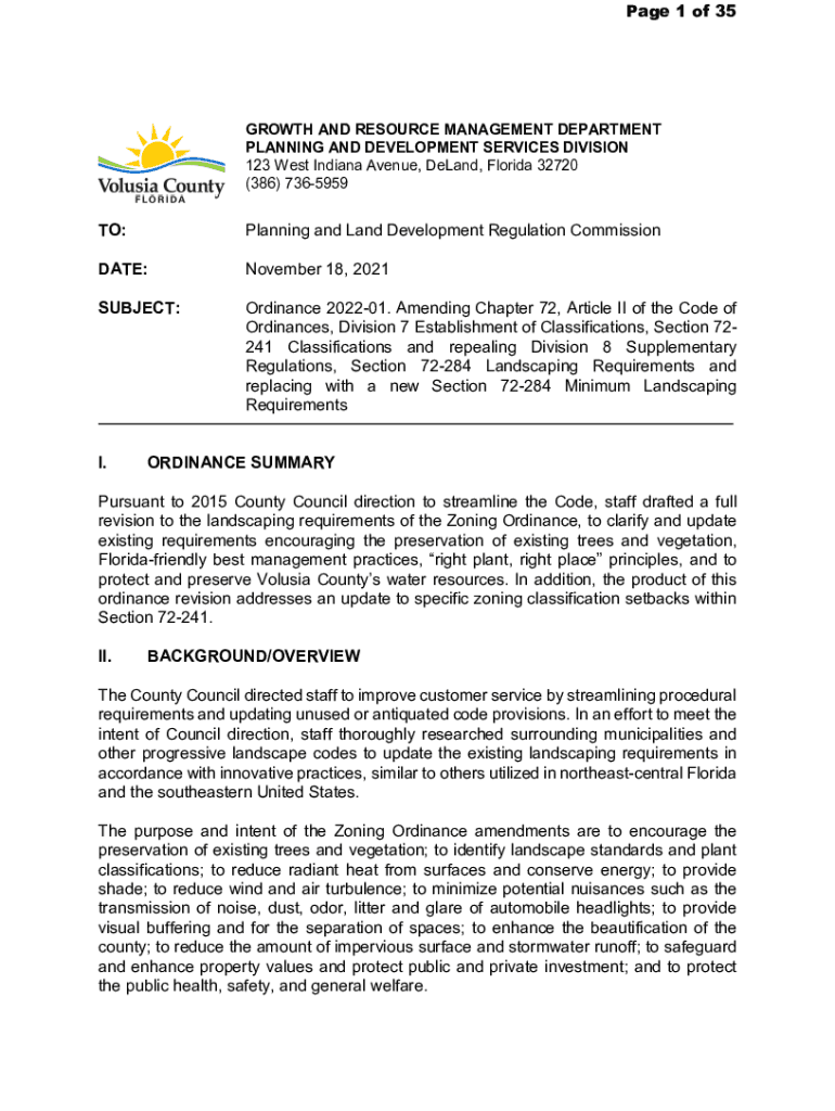 Page 1 of 35GROWTH AND RESOURCE MANAGEMENT DEPARTMENT PLANNING AND DEVELOPMENT SERVICES DIVISION 123 West Indiana Avenue, Demand, Florida 32720 (386) 7365959TO:Planning and Land Development Regulation
