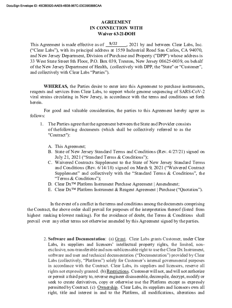 AGREEMENT IN CONNECTION WITH Waiver 6321DOH This Agreement is made effective as of, 2021 by and between Clear Labs, Inc. (Clear Labs), with its principal address at 1559 Industrial Road San Carlos,