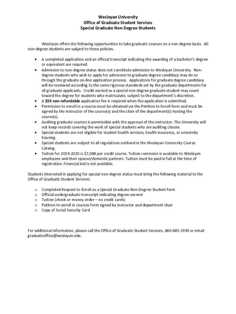 Get the free Non-Degree Programs, Graduate Student Services - Wesleyan University
