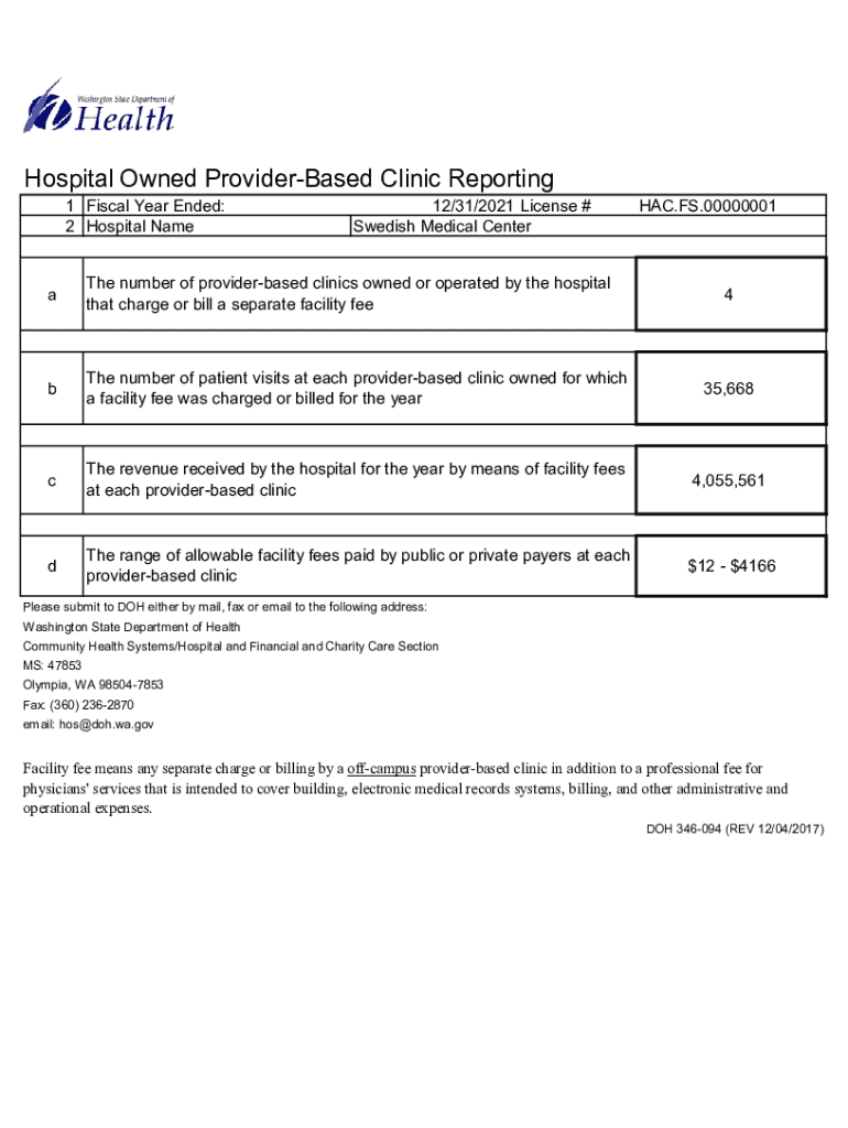 Get the free DOH FORM 346-094 Hospital Owned Provider-Based Clinic Reporting. DOH FORM 346-094 Ho...