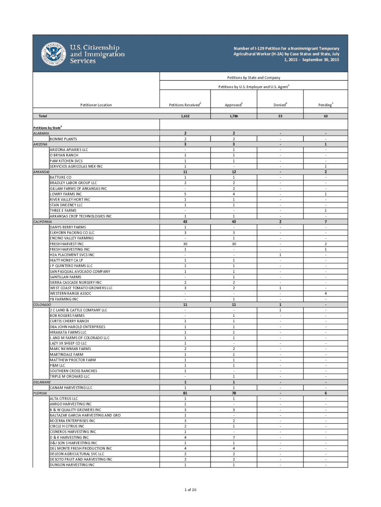 Get the free USCIS Form I-129 Temporary Agricultural Worker (H-2A) Performance Data. USCIS Form I...