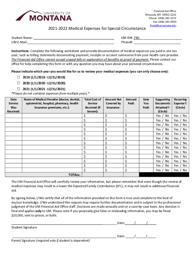 finaid@umontana.edu20212022 Medical Expenses for Special Circumstance